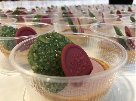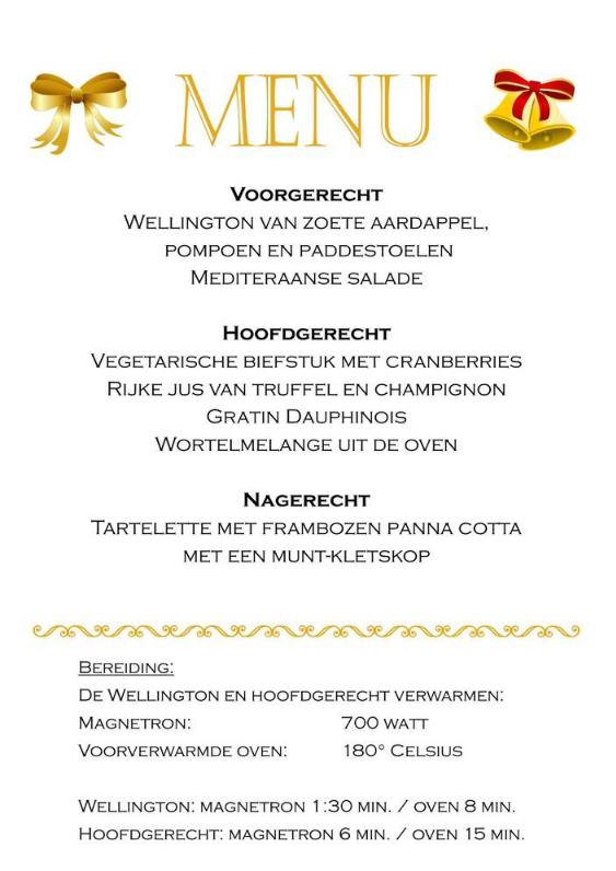 De diners waren dan ook restaurant-waardig! De vrijwilligers en koks van Buurzaam Thuis hebben een voorgerecht met een heerlijke Wellington van pompoen, zoete aardappel en paddenstoelen met een Mediterraanse salade op tafel gezet. Als hoofdgerecht vegetarische biefstuk met een jus van truffel en champignon, gratin Dauphinois met cranberry en een wortelmix uit de oven. En als nagerecht een tartelette met frambozen panna cotta en een munt-kletskop.